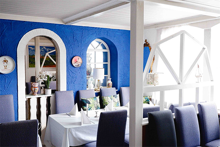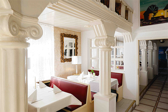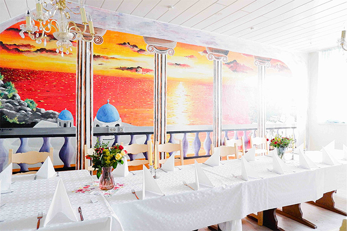 Unser Angebot umfasst kalte und warme Vorspeisen, üppige Salate, Suppen, Fischgerichte, Spezialitäten vom Grill, gemischte Fleischplatten, Gerichte von Kalb, Lamm, Geflügel und vieles mehr. Unser Restaurant bietet viel Platz mit 180 Sitzplätzen für kleine und große Gesellschaften, Familienfeiern und jegliche Feierlichkeiten.